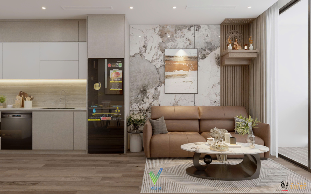 Kiến trúc và nội thất Vista thiết kế thi công nội thất căn hộ 2 phòng ngủ 73m2 tại khu đô thị Ecopark