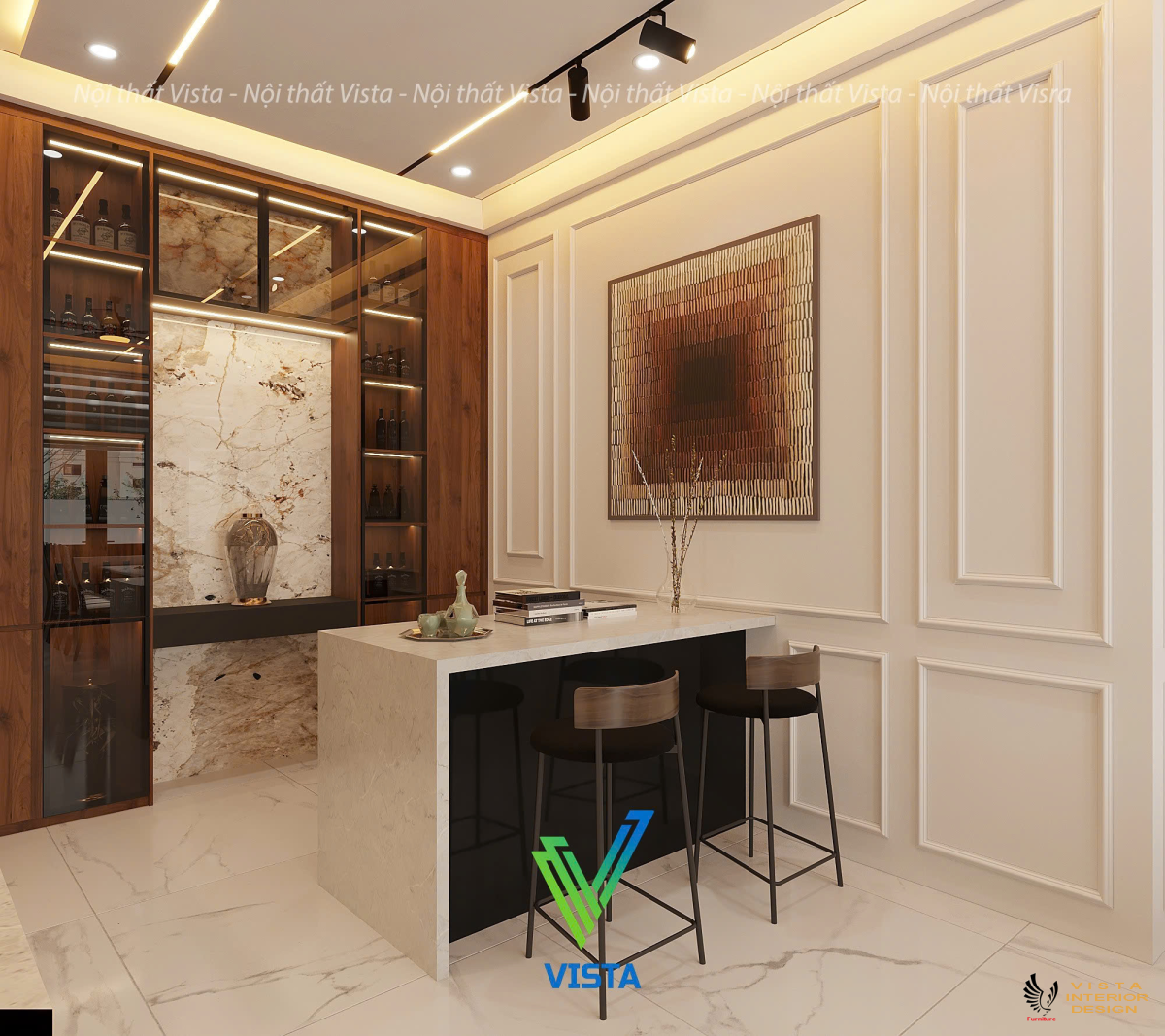 Kiến trúc và nội thất Vista thiết kế thi công nội thất căn hộ 2 phòng ngủ 73m2 tại khu đô thị Ecopark